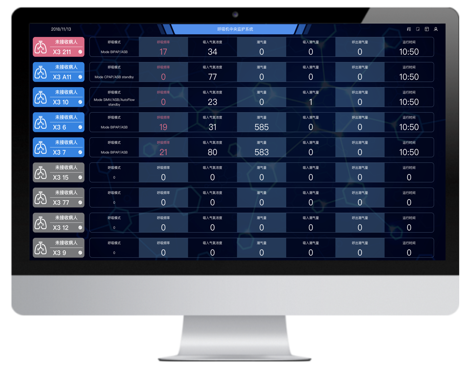 跨品牌有創(chuàng)呼吸機中央監(jiān)護系統